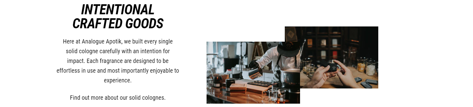 馬來西亞香氛品牌Analogue Apotik,品牌名的由來從”Pharmacist”這個字緣起的,Pharmacist是藥劑師的意思,在馬來西亞古老的藥劑師,藥調配許多藥方,謹慎細心、機制靈敏的精神,這份精神傳承到了Analogue Apotik,創辦人Adrian Cheong在偶然的機會接觸到製作古龍水的製程,開始全心投入研究,所有香味都是歷經多次實驗後調配而成,每個固態古龍水都是手工製成,製成嚴謹、包裝講究,為了繼承舊有的精神,並通過製作在現代社會中有意義的產品來重新引入我們的傳統藥劑師所遺漏的東西。我們的目標是通過我們的工藝成為舊行業的類似物,從而使我們推出易於使用的男士固體古龍水系列。