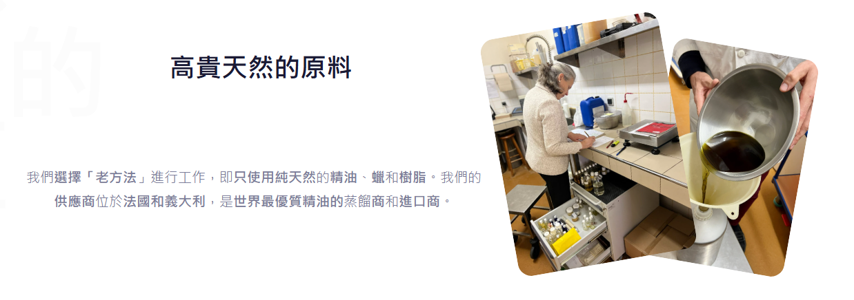 手工品質是我們作為肥皂製造商和調香師的雙重職業的核心。我們很自豪能夠參與手工產品的重新評估,這些產品遵循更負責任的製造邏輯,並尊重人類和環境。工匠精神是對未來的挑戰。