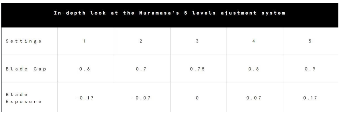 The Muramasa’s unique blade exposure setting, made possible through the sliding base-plates system, provides: